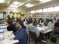 現1年生と新1年生が交流している間,保護者の皆様方には図書館で説明会を