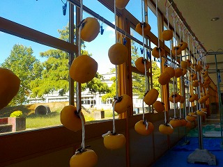 2023年10月20日 / 最終更新日 : 2023年10月20日 staff 東小news 10月18日(水) 干し柿づくり(3年) 3年生が干し柿作りに挑戦しました。ボランティアさんに手伝っていただきながら、学校にある柿を収穫し、皮を上手にむいて、ひもに付け、熱湯に通して廊下に用意した物干し竿に吊していきました。1ヶ月ほどで食べられるようになります。