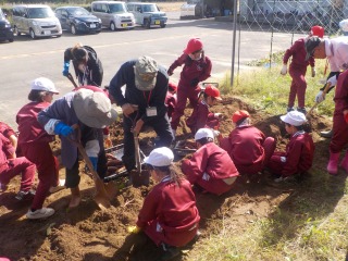 その後、子どもたちが、つるの近くを掘りました。