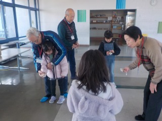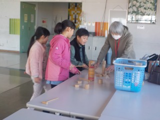 けん玉やコマなど普段はあまり遊ぶことのない道具を使うため、最初は苦戦していましたが、ボランティアの方々にていねいに教えてもらい、徐々にコツをつかみ、楽しく遊ぶことができました。