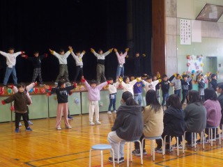 初めに、1・2年生からダンスのプレゼントがありました。