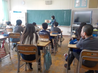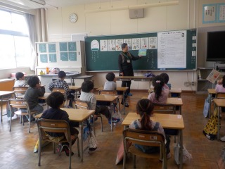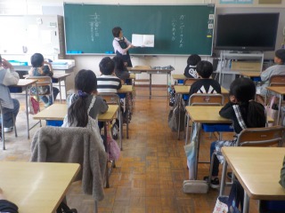 月に2回程度、朝学習の時間に各教室で読み聞かせをしてくれます。