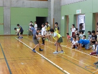 おたまに乗せたピンポン玉を落とさないように,リレーします。