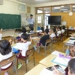 少し蒸し暑い教室ですが,子どもたちは朝から熱心に学習しています。
