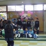 2019年12月23日 / 最終更新日 : 2019年12月23日 admin 東小news 12月23日(月)番外編 放課後,職員室に妖精「キラリンちゃん」がやってきました。 「キラリンちゃん」はその後,ひまわりクラブに向かいました。 ひまわりクラブの子どもたちに,クリスマスプレゼントを渡すためです。 プレゼントを渡した後は記念撮影です。 「誰が入っているの?」と子どもたち。 「『キラリンちゃん』は妖精なので,誰かが入っているのではないんだよ。」 「キラリンちゃん」は子どもたちに夢を与えて,帰って行きました。